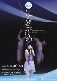 「美女と野獣」(’03きたく子ども劇場賞)で日本中を魅了した、イタリア、テアトロ・キズメットの脚本・演出家テレーサ・ルドヴィコを迎え、日本の役者と共に創りあげた『にんぎょひめ』。シンプルで美しく、幻想的。想像力をかき立てる話題作!!